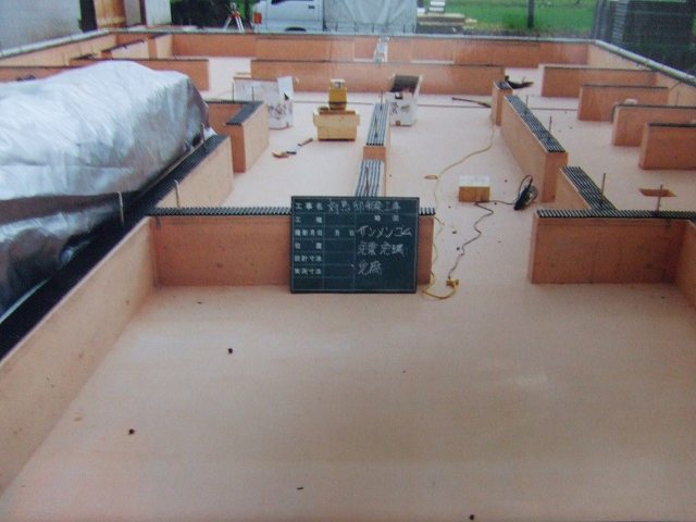 基礎,土間部分に抗酸化溶液塗布及びサンメンゴム設置完了